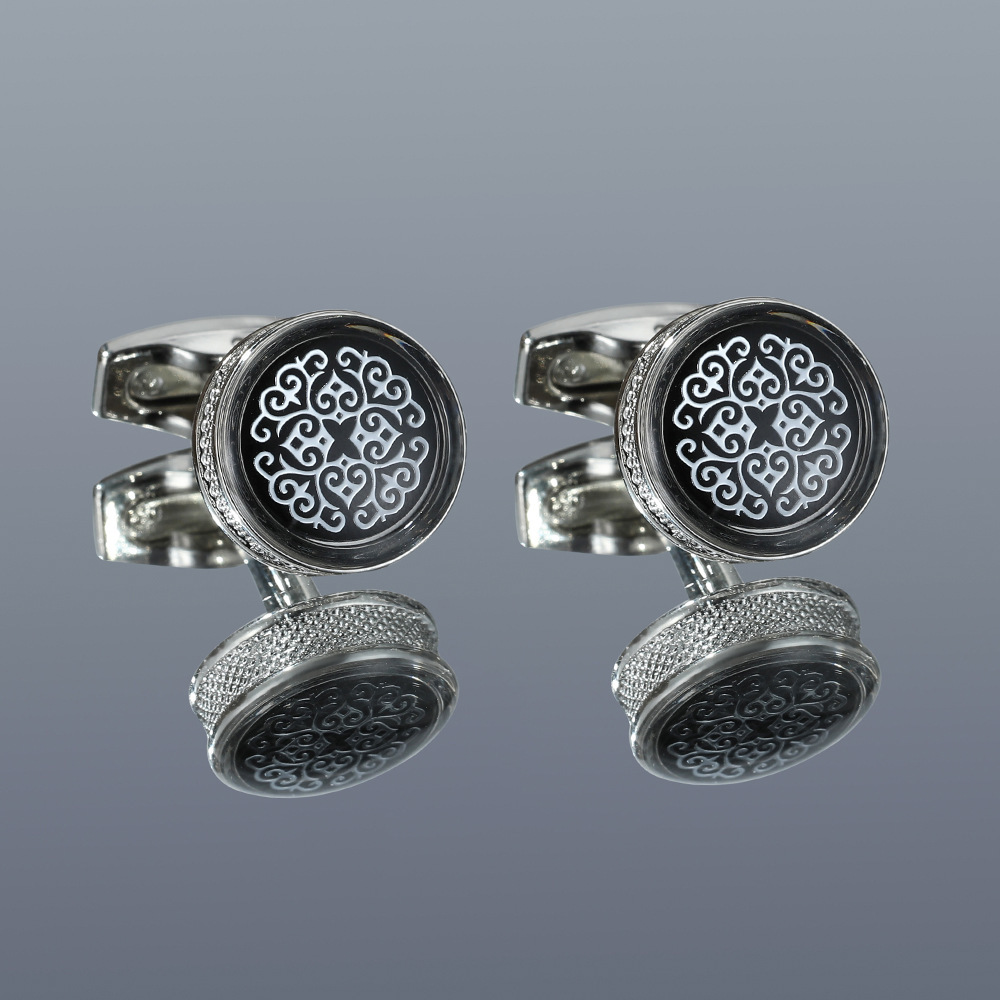 Fashion Pattern Round Silver Cufflinks Cufflinks